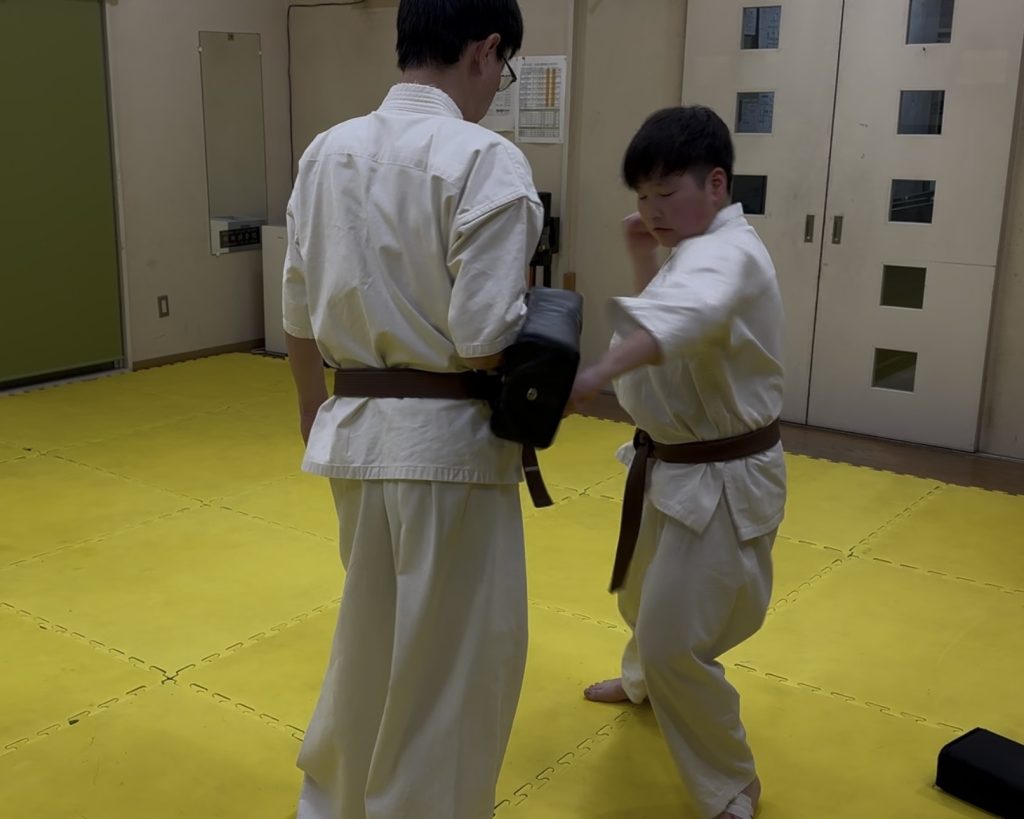 少年部のミット稽古では、久しぶりにコンビネーションの練習を行いました。
