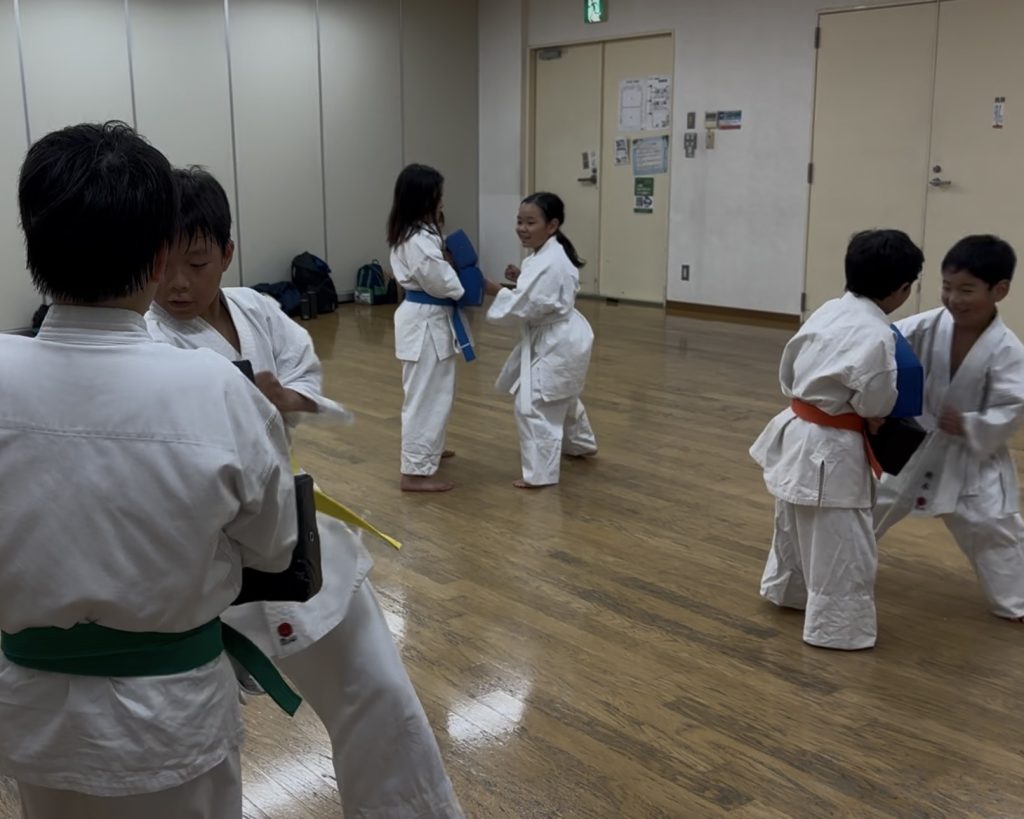 少年部のミット稽古はステップからの突きラッシュ!組手でも少しで良いので動く習慣をつけたいですね!