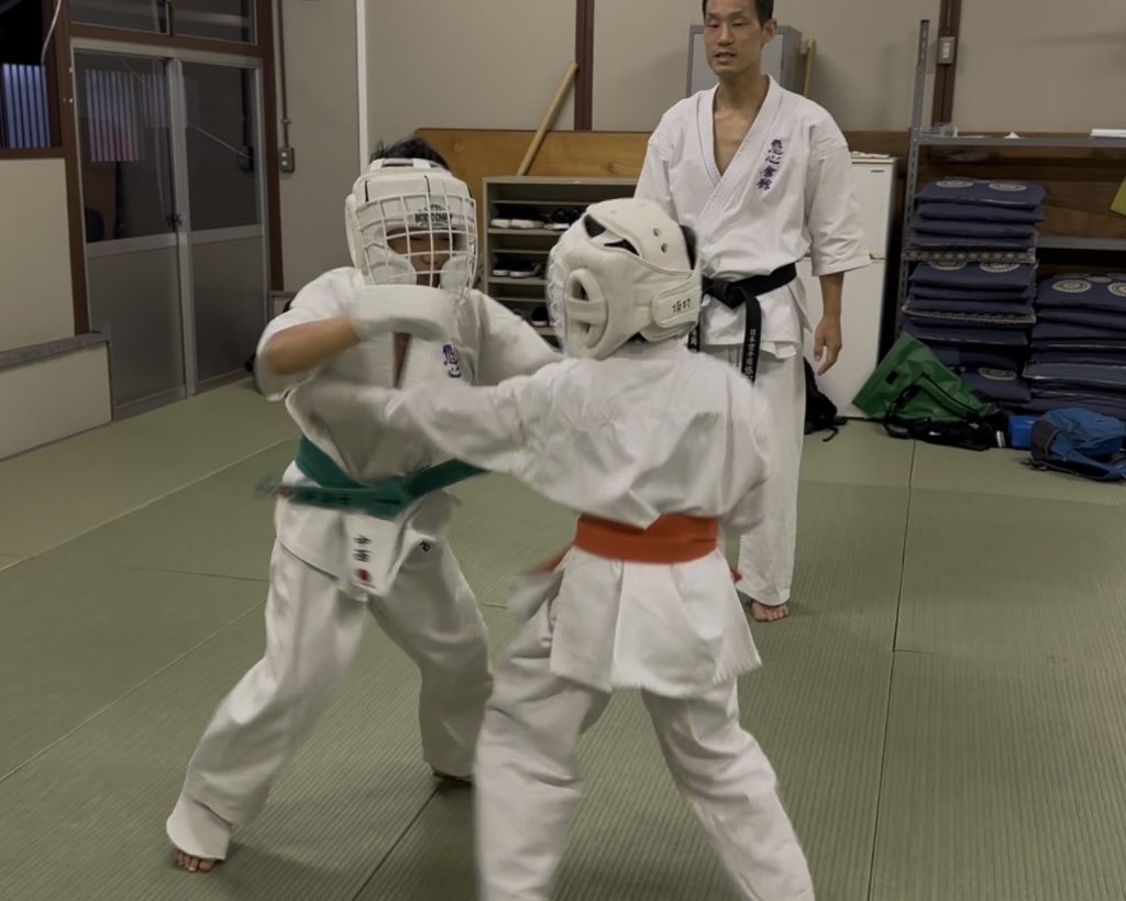 三日後の審査と10日後の試合両方にチャレンジするオレンジ帯のたいち君。審査の最終確認と試合を想定した組手を行いました!