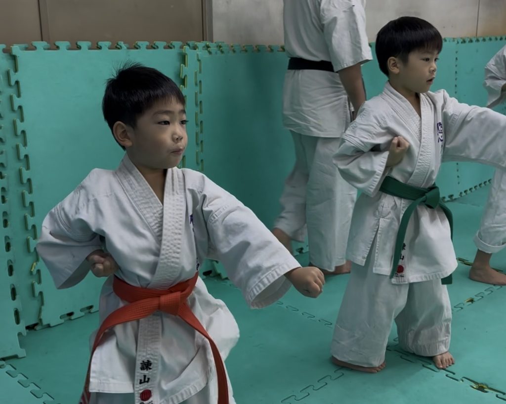 先週と打って変わって今日は参加者がかなり少なめ💦そんなわけでオレンジ帯のかいり君も前列でお手本の練習です!お兄ちゃんの横で頑張っていました!いいね👍