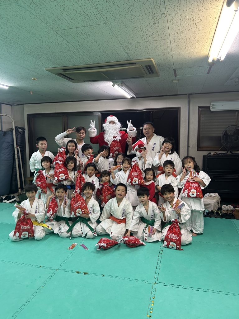 クリスマスイブの片江道場にサンタさんが来てくれました。