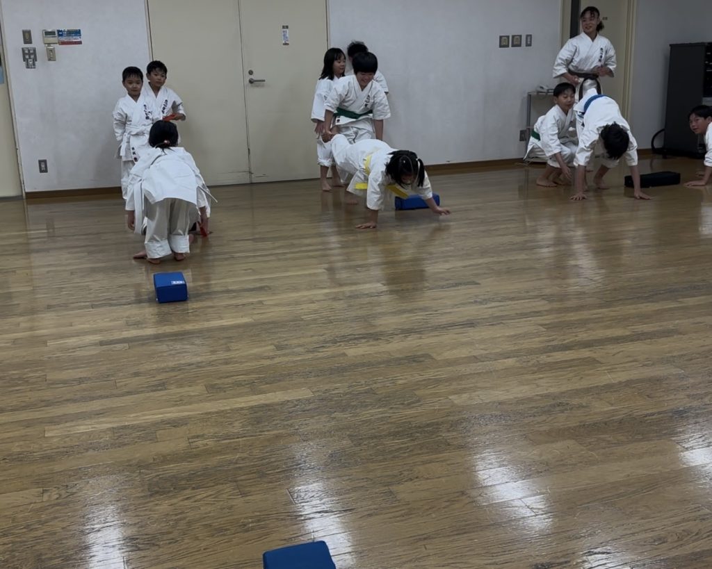 少年部の補強稽古では、久しぶりに手押し車トレーニングを実施。