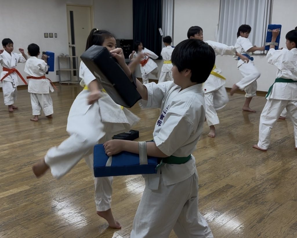 腕だけ・足だけにならず、全身を連動させた力強い蹴りが出せているかを確認しました。