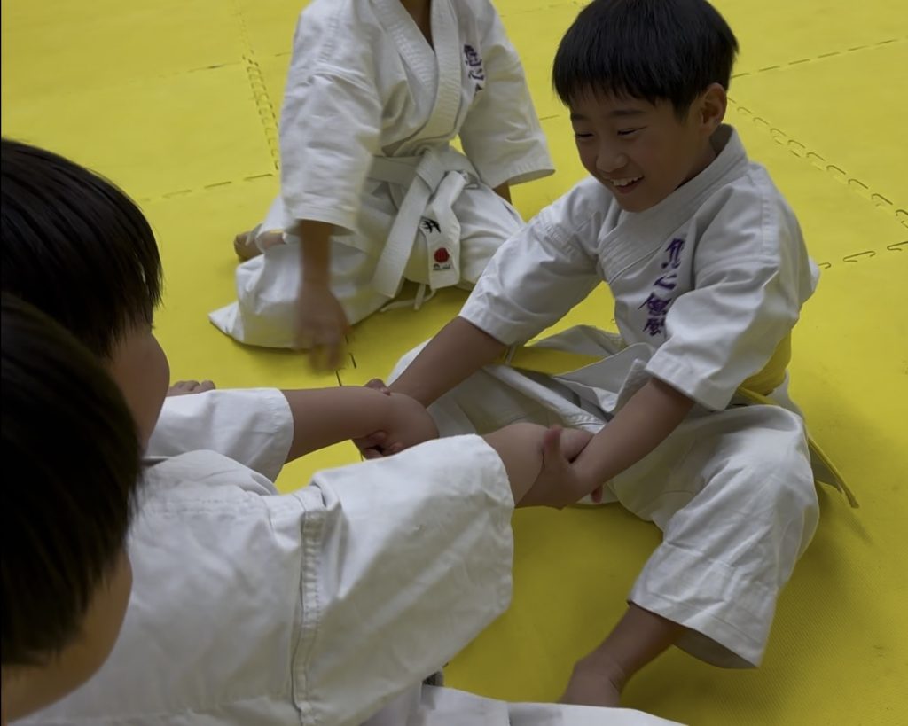 さっそく休憩中にみんなで柔軟ゴッコ👍家でもしっかりやっておいてね😆