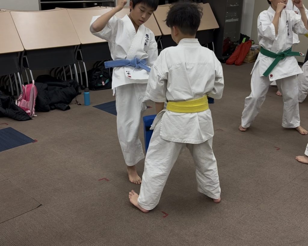 少年部のミット稽古では、久しぶりにコンビネーションの練習を行いました。
