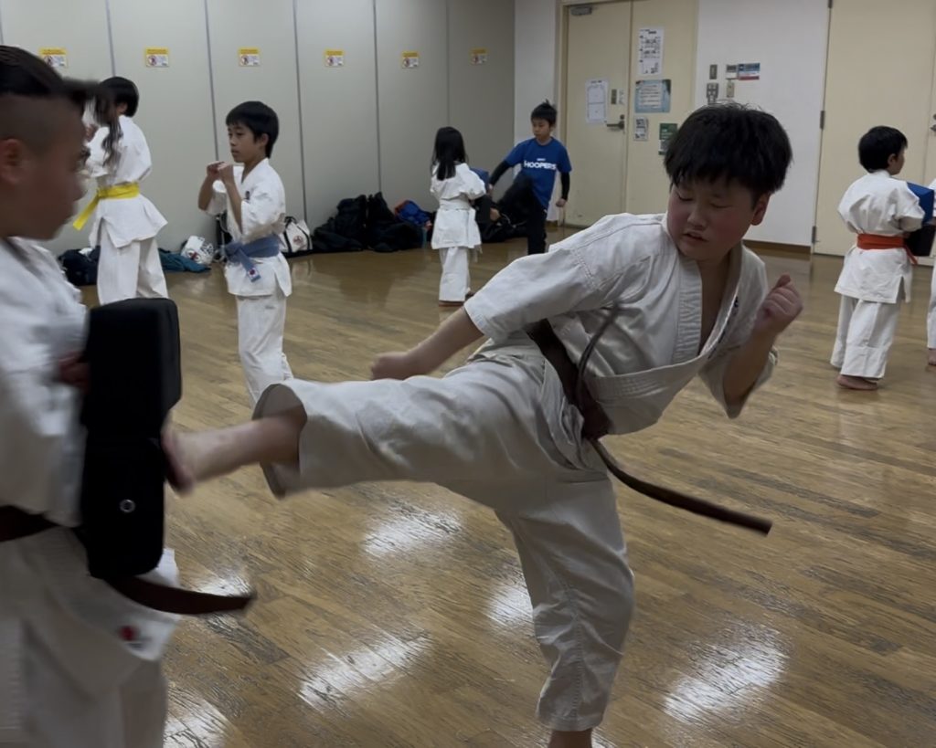 ミット稽古では、久しぶりに横蹴りの練習を行いました。