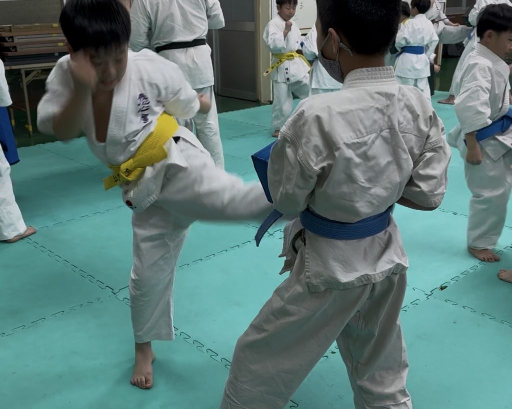 ミット稽古では突きからの下段回し蹴り、組手では内股蹴りのカウンターを練習。下段蹴りを中心に実戦的な内容で取り組みました。