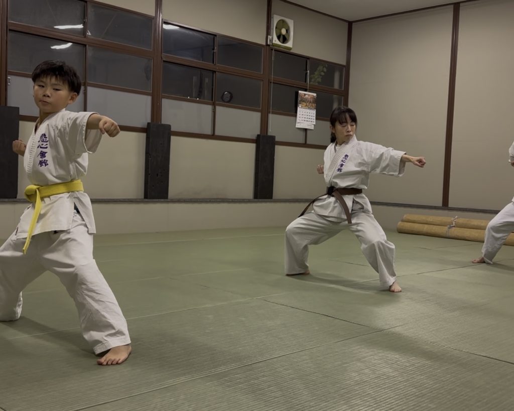 かいせい君が少年部から引き続きで一般部にも参加しました。演武会で披露する平安3の型をみっちり練習!よく頑張ったね👍