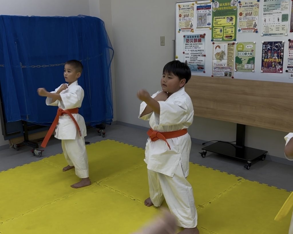 先日の審査で青帯になったたいち君といくと君。演武会の演目である平安2の練習に余念がありません。平安1に比べると格段に難しくなるので手こずる子も確かに多い😅
